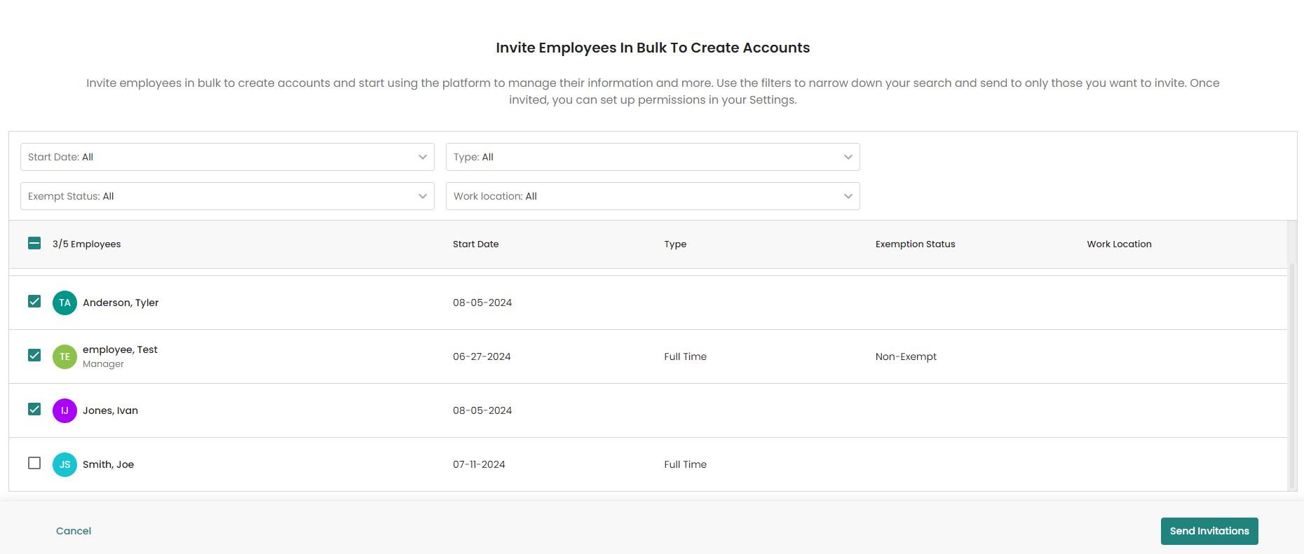 - Once all of the employees you want to invite are selected, select the ‘Send Invitations’ button on the bottom right.