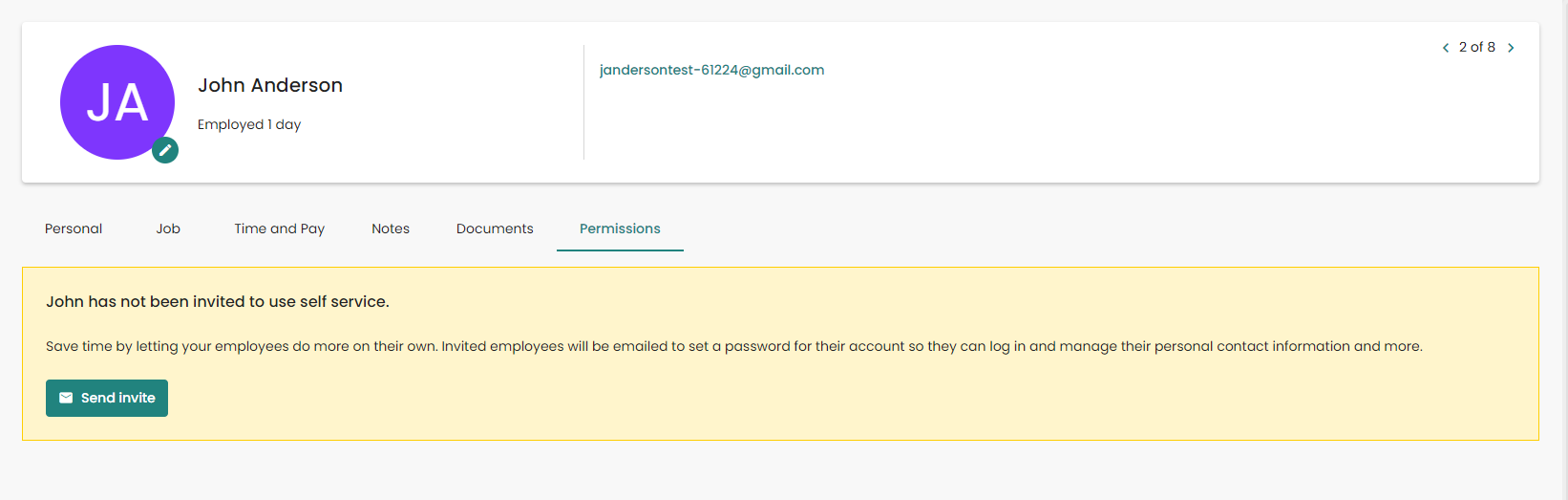 Self-service allows employees to gain access to the platform so they can access their information and perform tasks as applicable based on their permission level. Once invited, they will be able to log in. In order to be invited, the employee must have an email address on their profile. This allows an email to be sent to them with the invitation