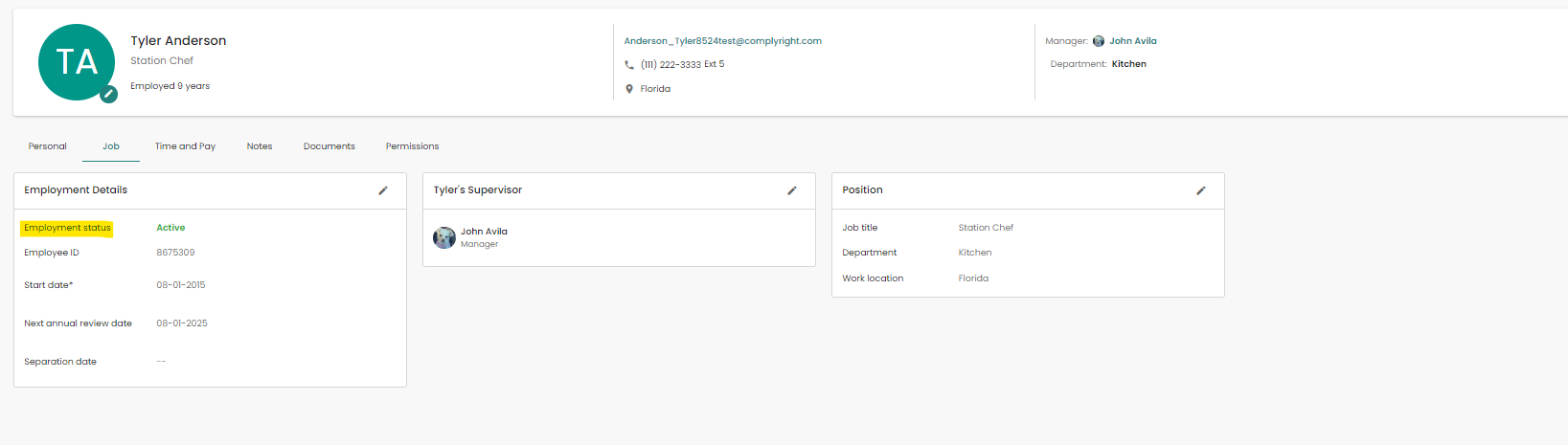 7) Change the Employment Status from Inactive back to Active and click Save.