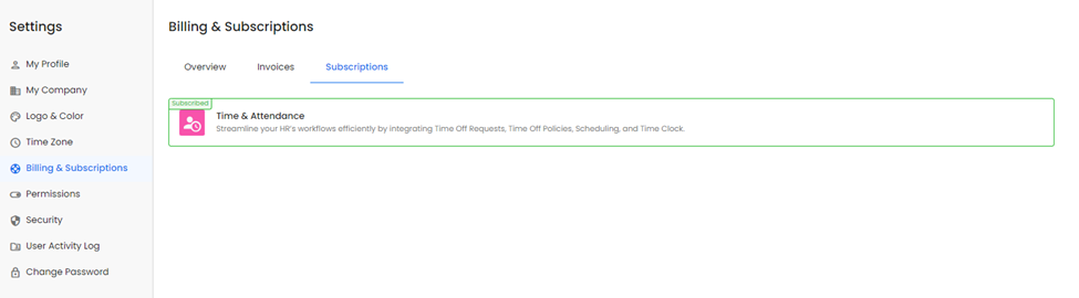 Currently the time & attendance subscription is the only option available but we are excited to have other subscription types coming soon to help expand your workplace capabilities within Personelle.