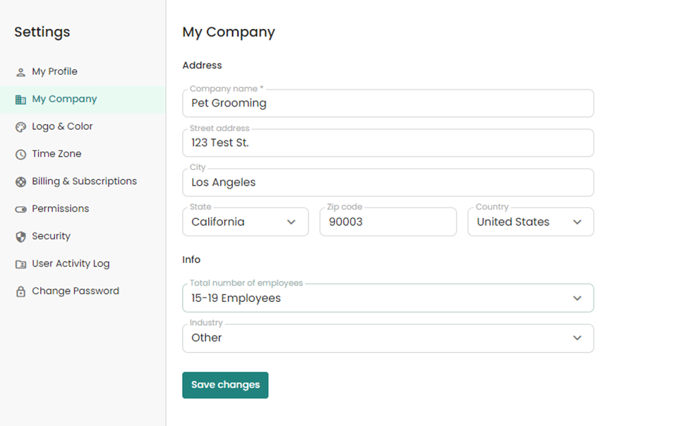 From here you can set up your company name, mailing address, info on the total number of employees within your organization and the industry type.