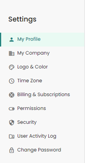 Account owners and admins have access to adjust the Personelle account settings. Select settings from the dashboard's quick links area to quickly access the accounts settings. From the settings menu, you can make changes to the company profile information, set up a company logo, customize the company accounts color theme, manage subscriptions and more.