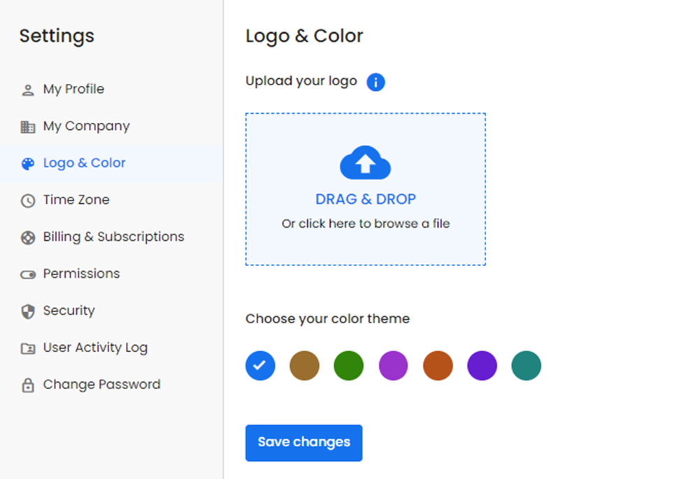 You can also select a color theme for the company's Personelle account, any color theme changes will also be reflected in all staff member logins.
