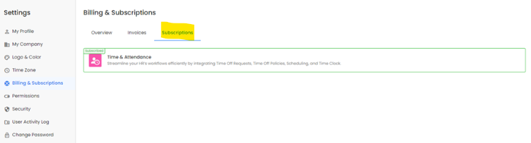 Currently the time & attendance subscription is the only option available but we are excited to have other subscription types coming soon to help expand your workplace capabilities within Personelle.