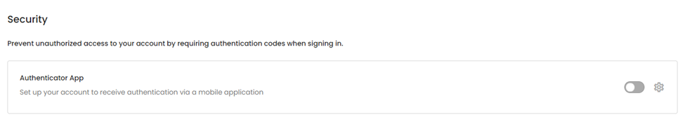 If desired, you can set up an authenticator application login step to add an additional layer of security to your account login. When first activated, the system will guide you through connecting an authentication app using your desired authentication application. Then you will be required to enter an authentication code whenever logging into your account.