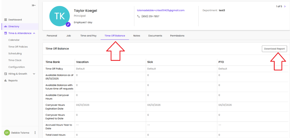 •Time off balance reports can now be downloaded from the Time Off Balance page within an employee's directory profile. The report will reflect the information displayed on that page.