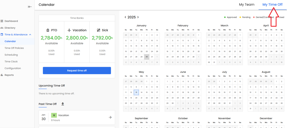 •Supervisors without Direct Reports will now have access to the 'My Time Off' calendar page.