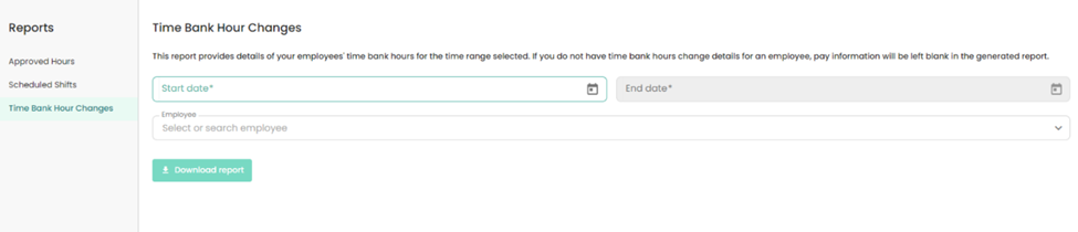 The time bank hour changes report tracks a history of changes within an employee's time banks such as when time is accrued and processed or when an employee is changed to a different time off policy plan.